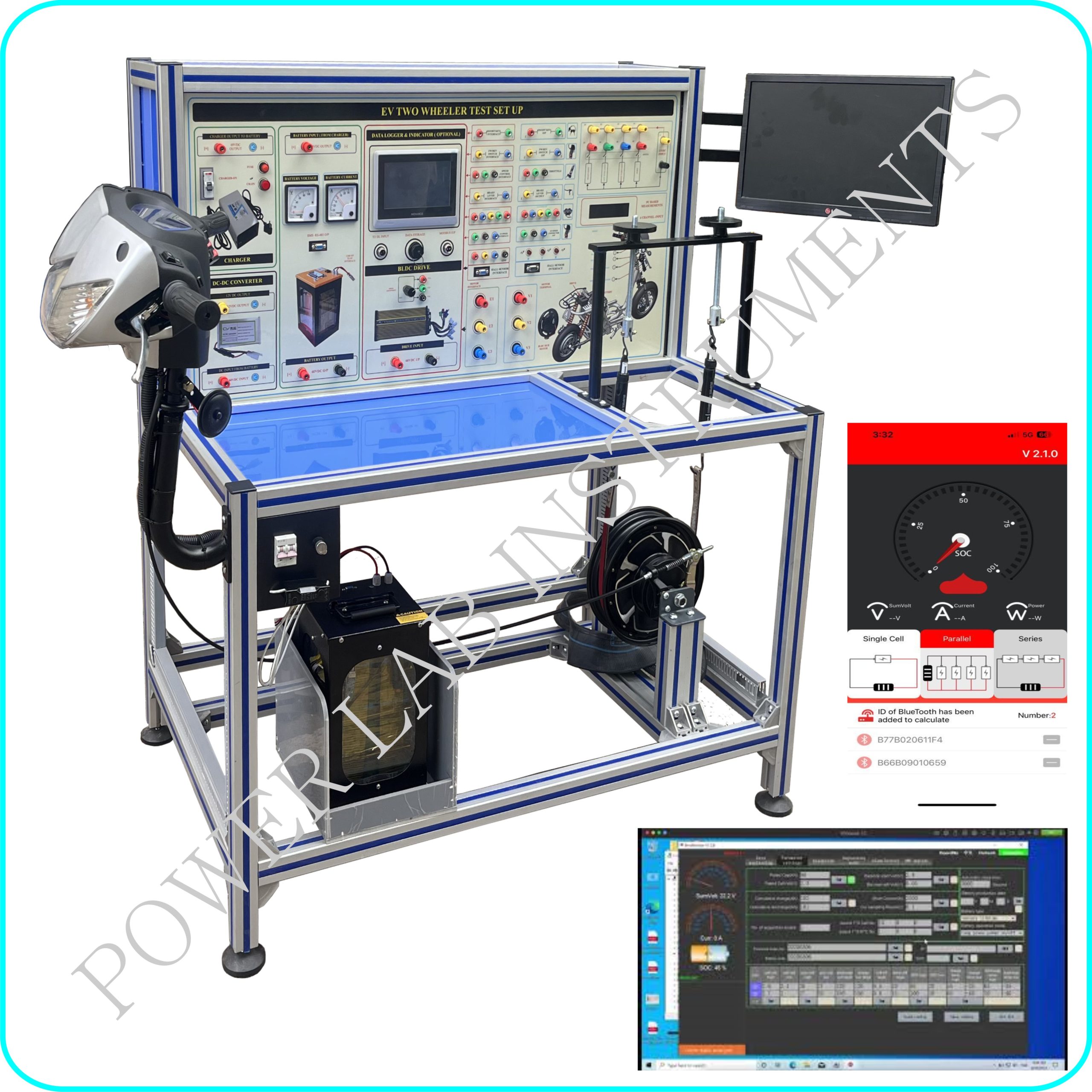Set up designed to study the connection procedure and testing procedure of electric 2 wheeler set up using various components of electric vehicle like battery , BLDC Hub Motor , drive etc , Set up consists of