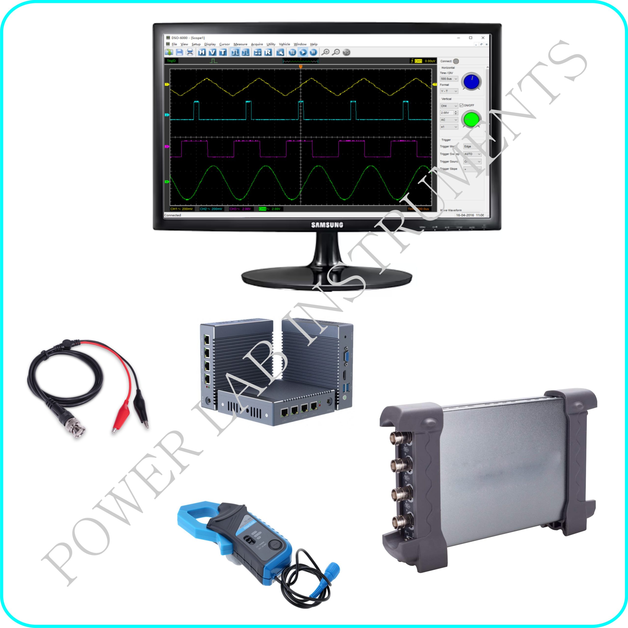 AC/DC Current Probe (3 qty) : Clamp type / AC or DC /frequency range: Up to 20KHz /Effective Measurement Range: 20mA to 65A