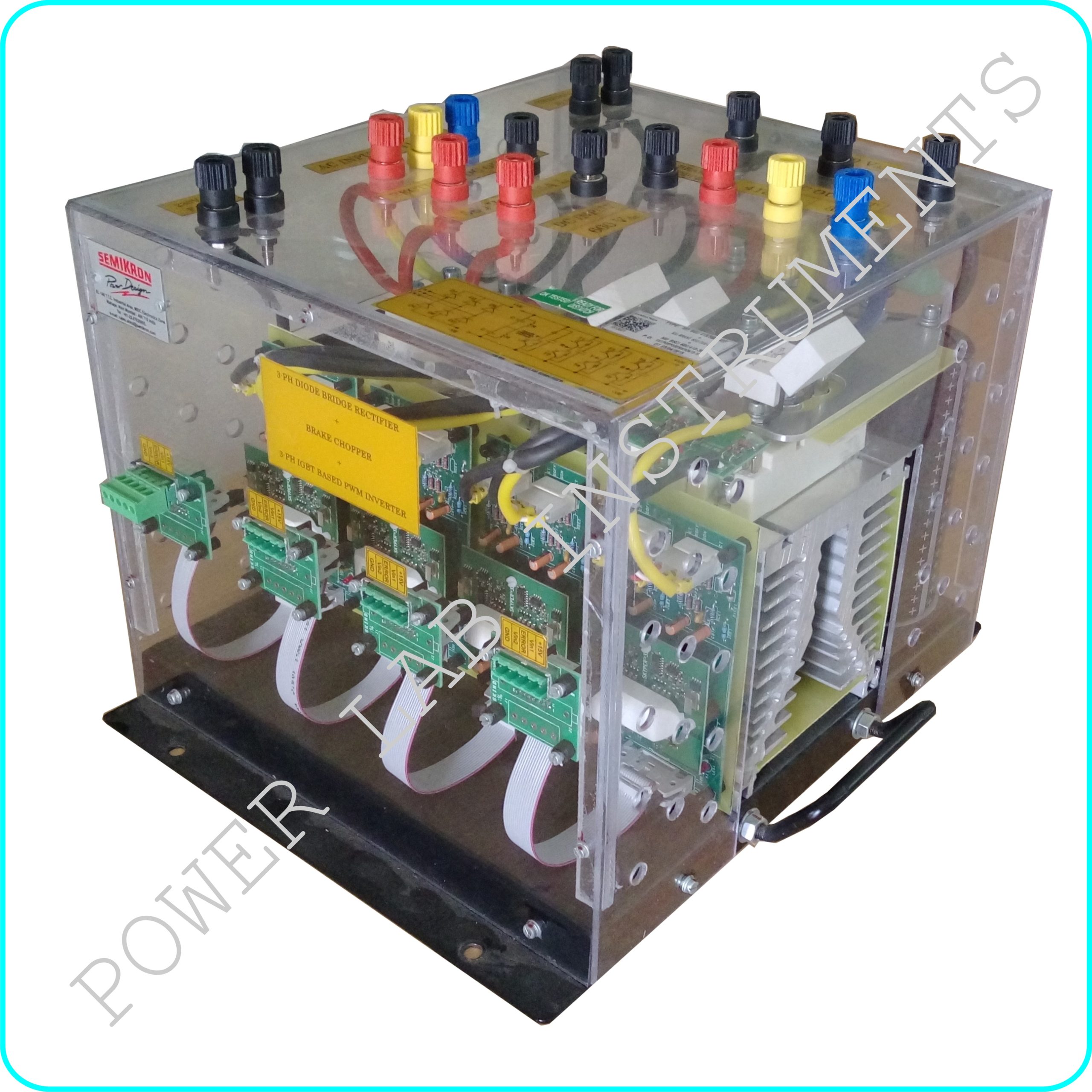 The system features an encapsulated assembly, allowing students to safely study modern IGBT and diode-based converters in a Power Electronics laboratory environment. This design ensures maximum safety by minimizing the risk of electrical shock, providing a “Total Safety” learning experience.